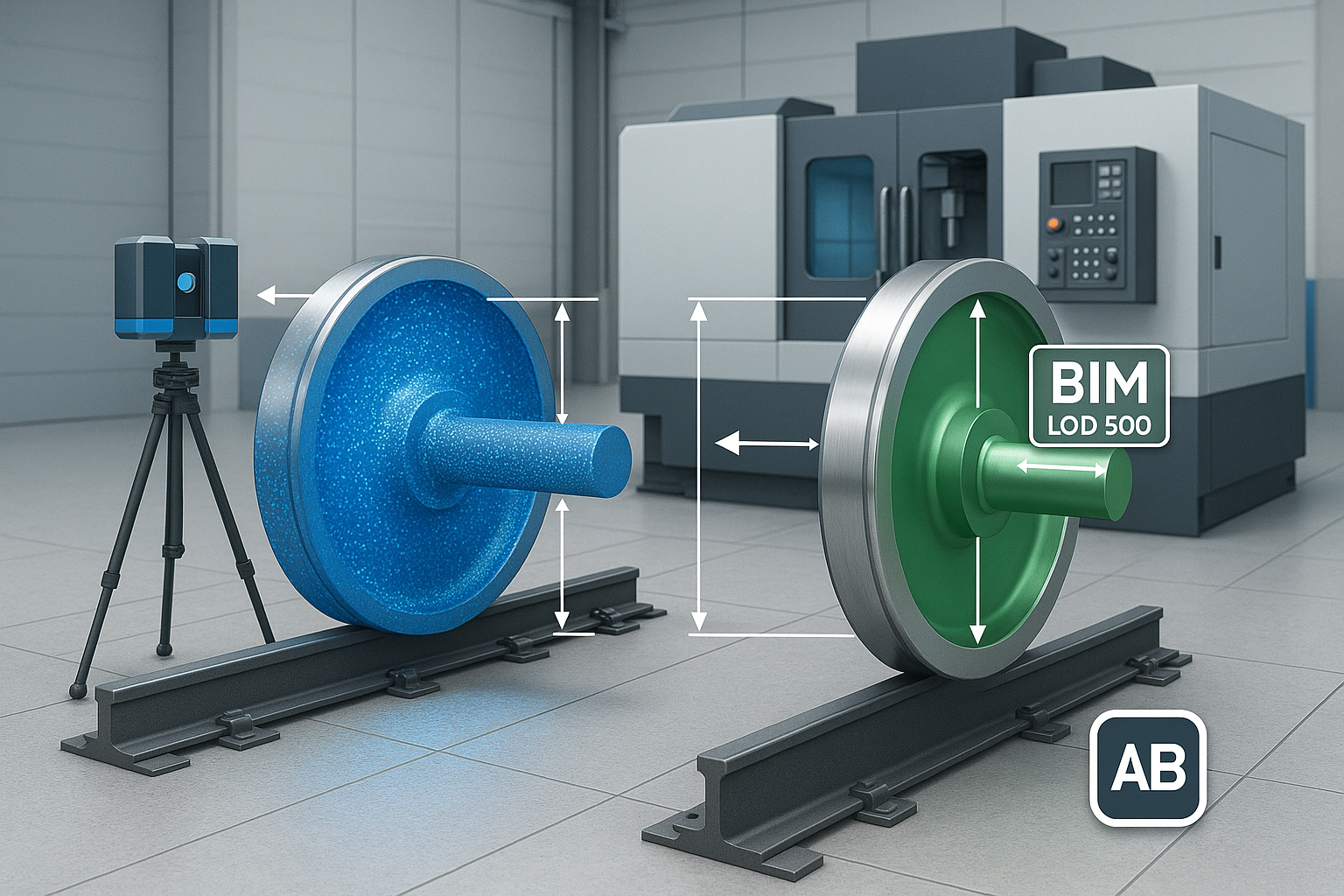 Contrôle dimensionnel avant / après usinage (roues de bogies) | Scan 3D, BIM LOD 500 & plans 2D – S3D Engineering United®